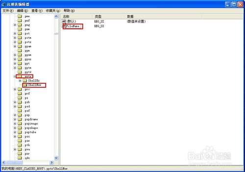 用同样的方式,在注册表编辑器中依次打开:HKEY_CLASSES_ROOT——.pptx,右击pptx,选择新建——项,命名为“ShellNew”,右击ShellNew,选择新建——字符串值,命名为“FileName”。双击FileName单开属性,在数值数据中填入“powerpoint.xlsx”,同时双击默认打开其属性,在数值数据中填入“powerpoint.xlsx”。现在打开右键菜单你就可以看到OFFICE图标了。