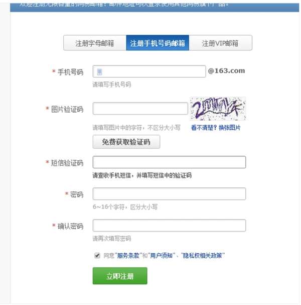 手机注册电子邮件: