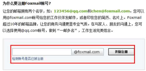 3、点击注册foxmail.com邮箱帐号,然后输入账号,点击检测帐号是否已被注册