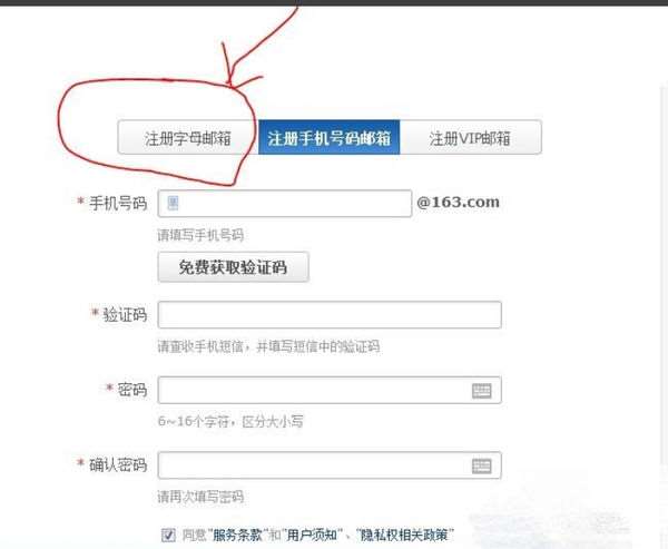 3.选择注册字母邮箱。