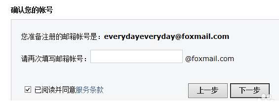 4、点击开始注册按钮,再次输入foxmail邮箱账号。