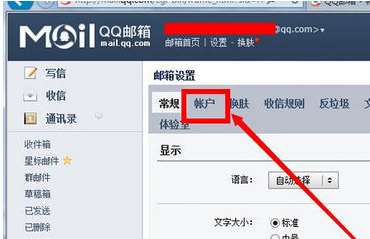 1、打开QQ邮箱后,点击账户。