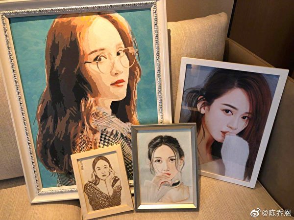 陈妍希为陈乔恩花的肖像画。(陈乔恩微博)