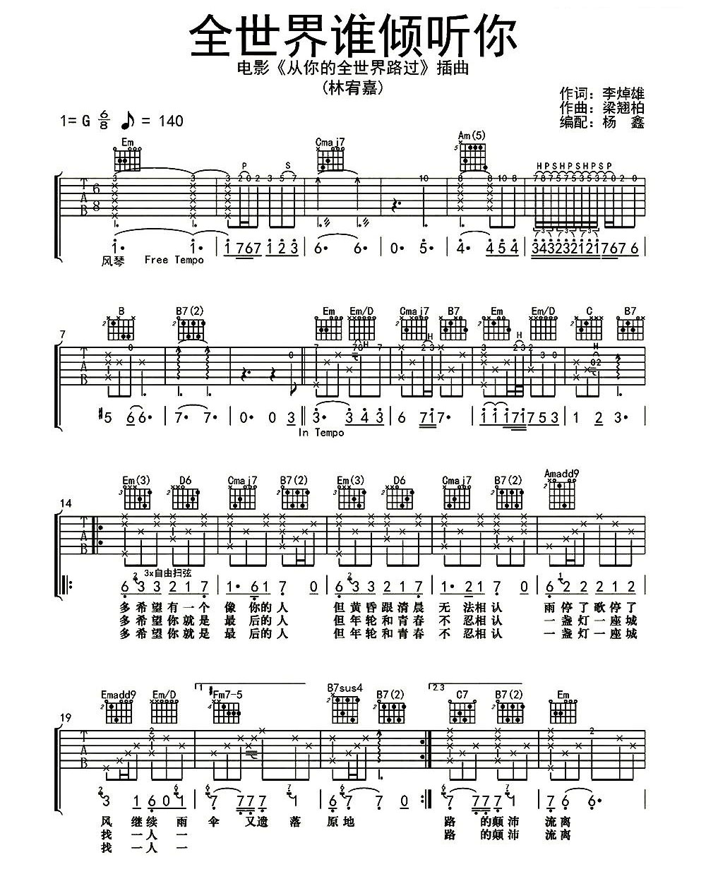 曲谱自学网今天精心准备的是《全世界谁倾听你曲谱》,下面是详解!