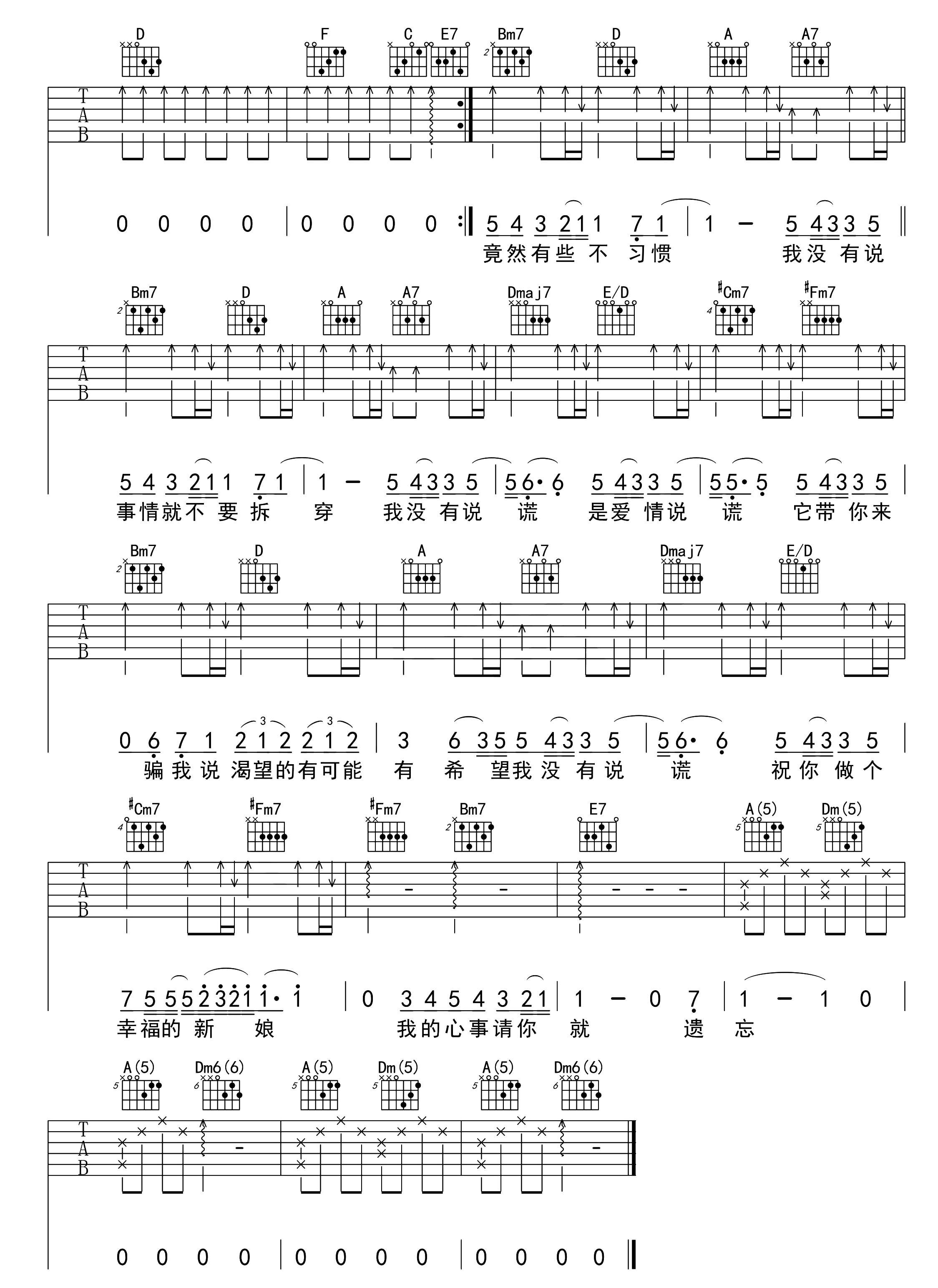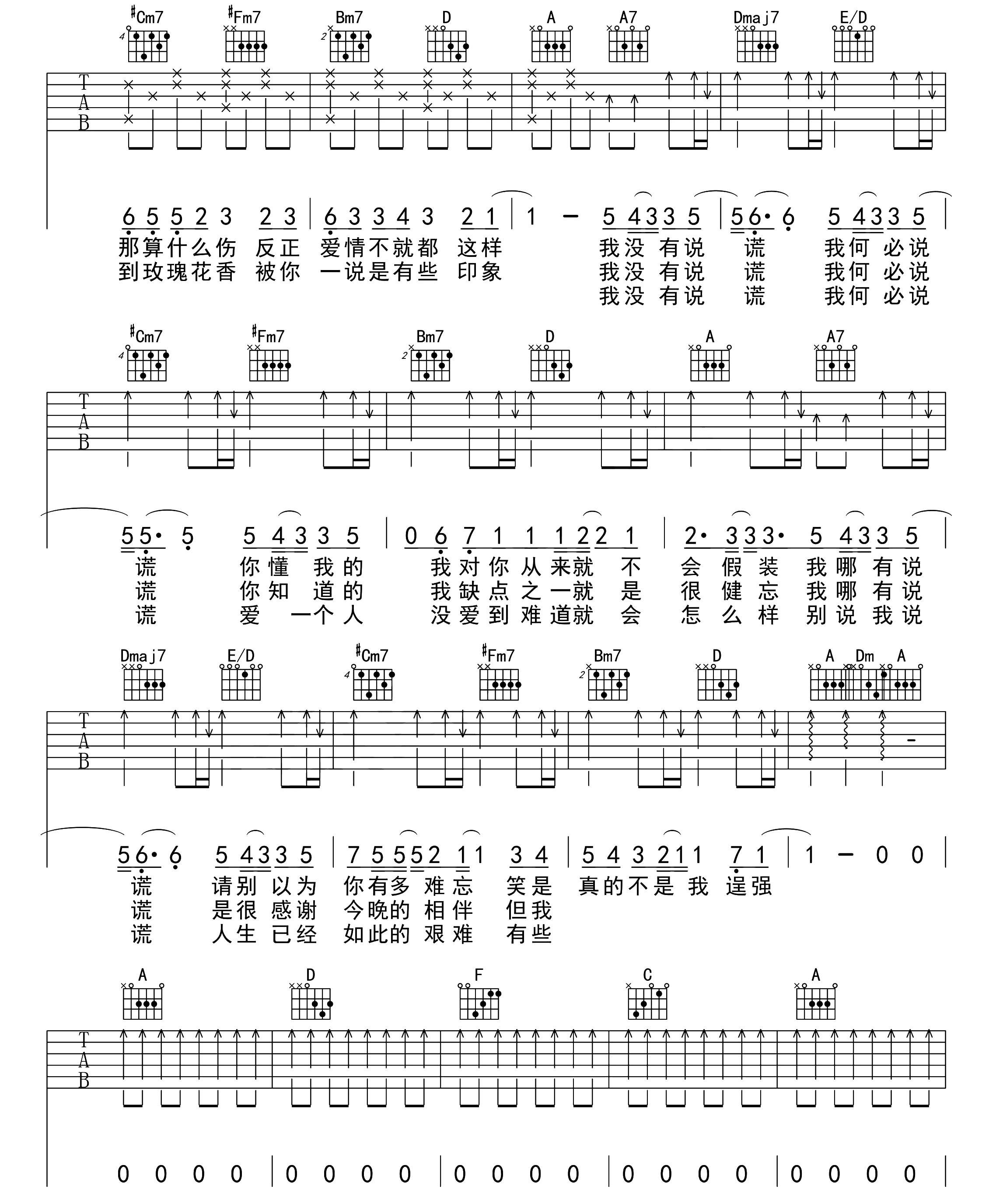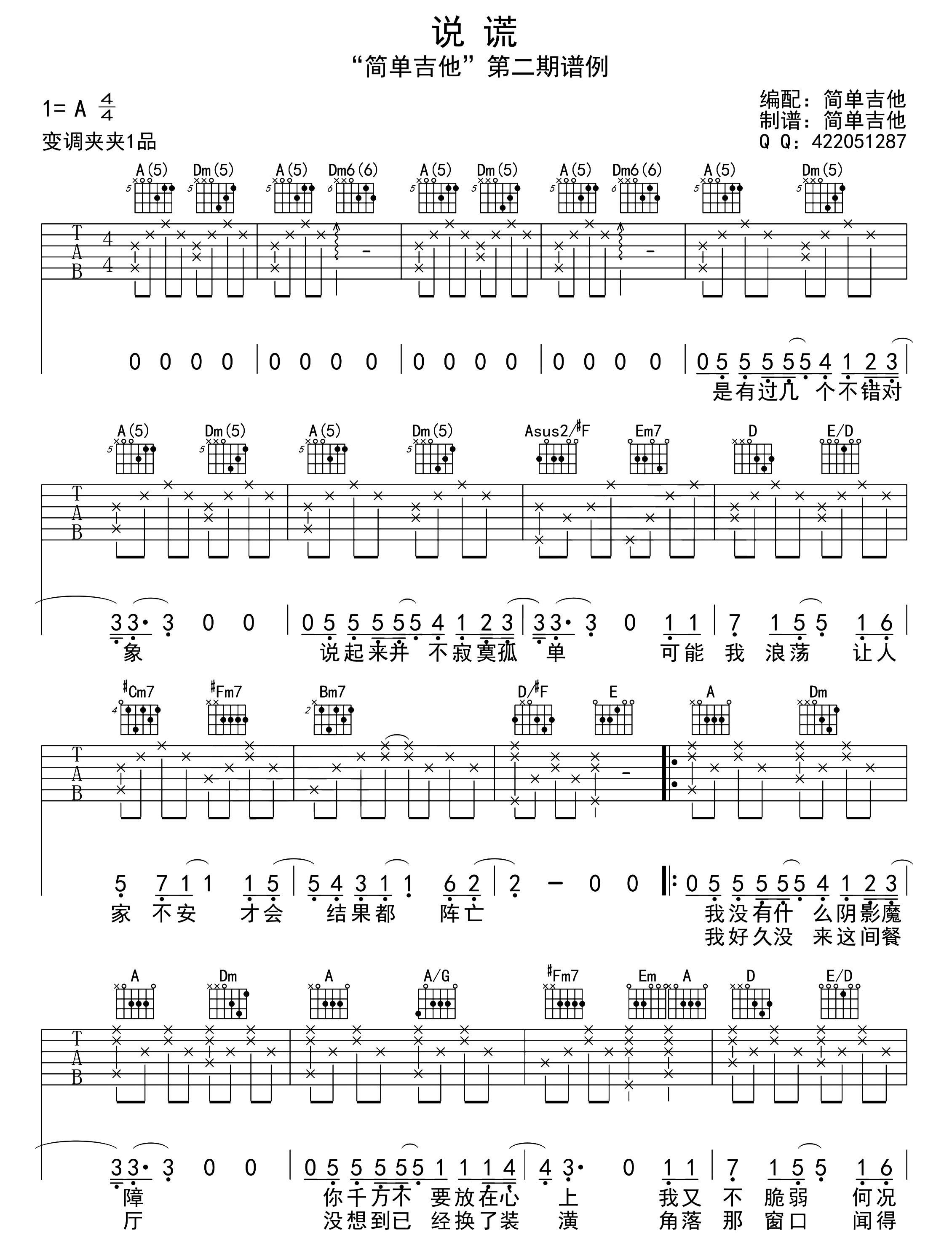 曲谱自学网今天精心准备的是《说谎曲谱》,下面是详解!