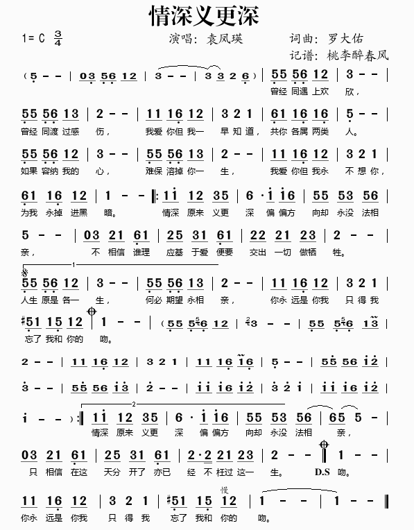 曲谱自学网今天精心准备的是《情深义更深曲谱》,下面是详解!