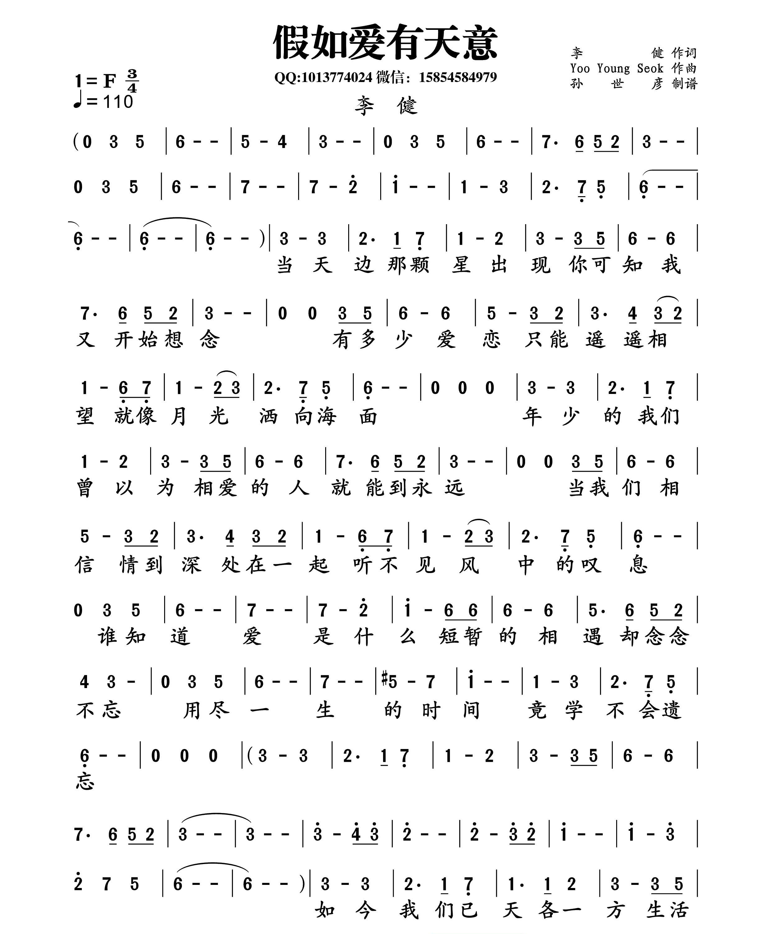 假如爱有天意简谱-曲谱-歌词