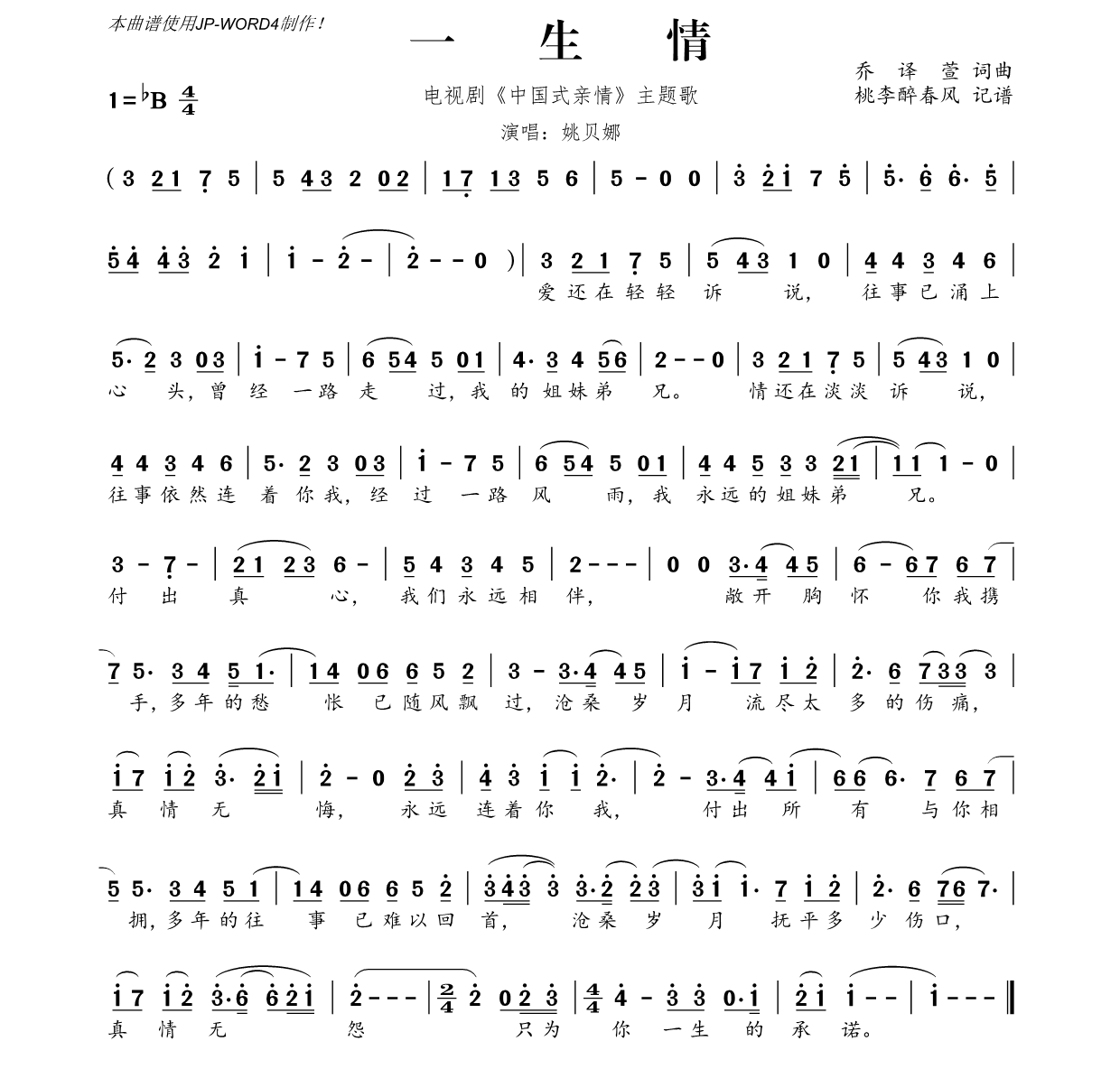一生情简谱-曲谱-歌词