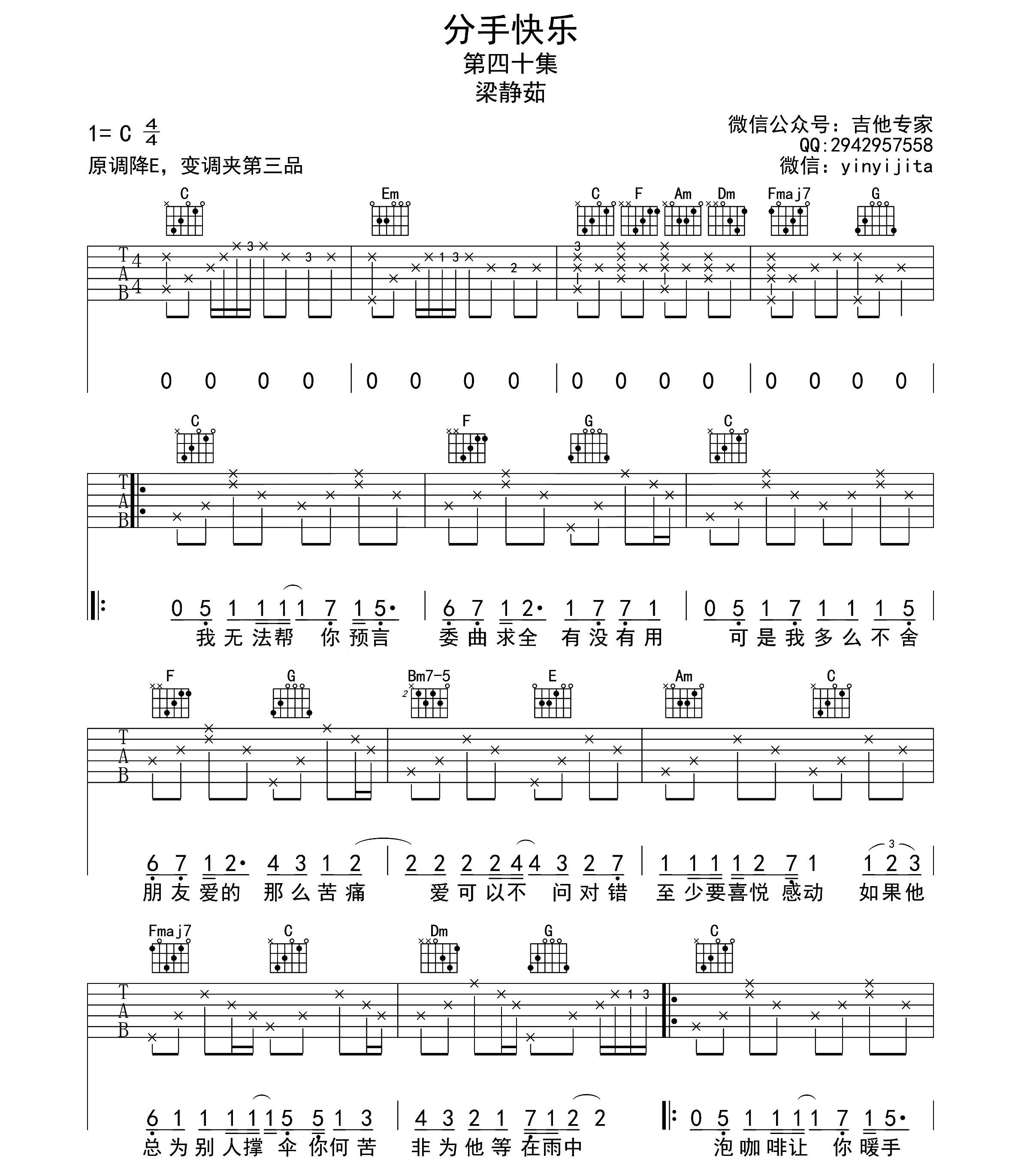 曲谱自学网今天精心准备的是《分手快乐曲谱》,下面是详解!