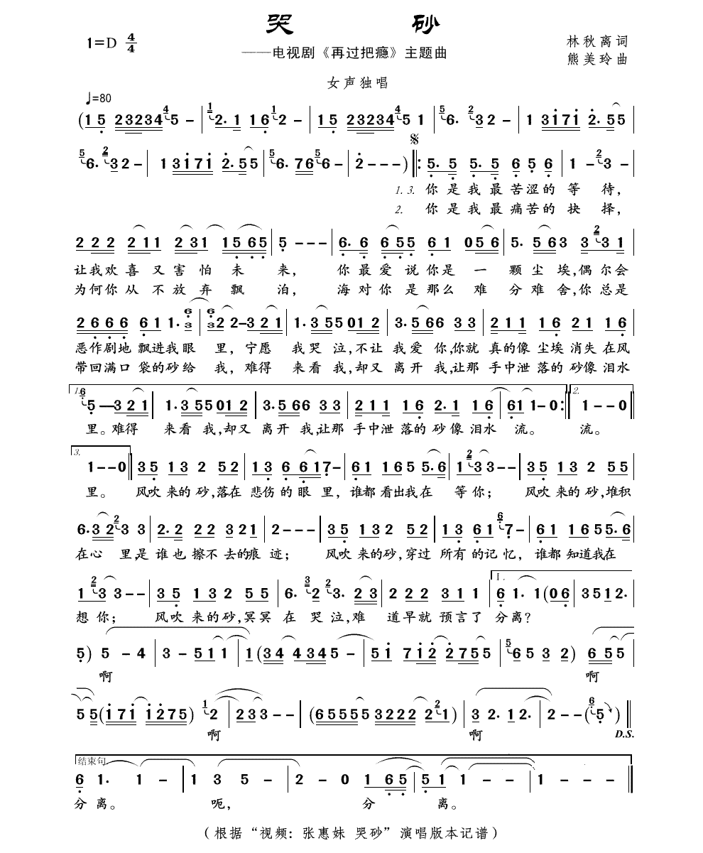 哭砂简谱-曲谱-歌词
