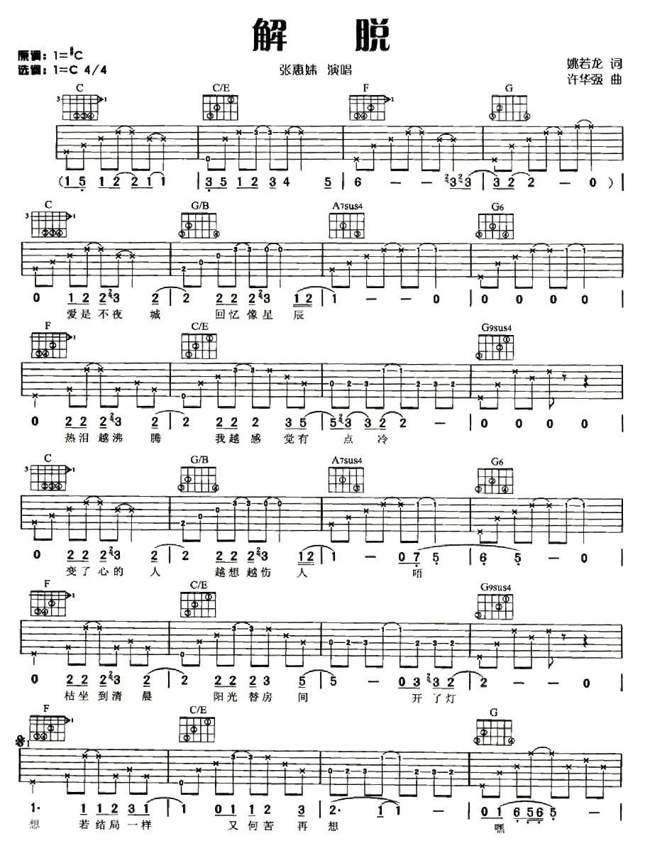 解脱简谱-曲谱-歌词