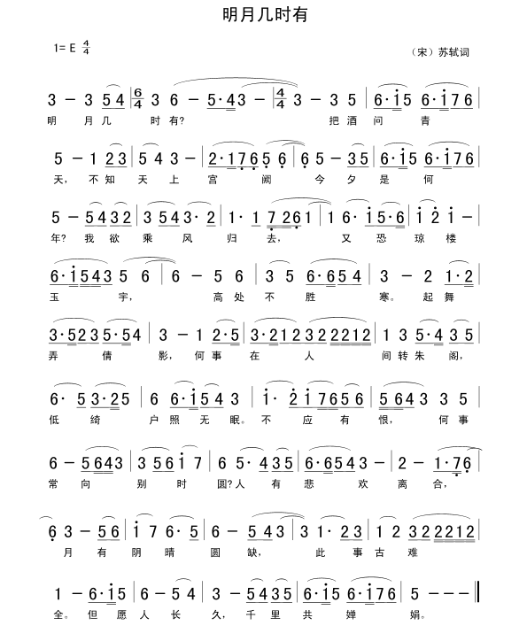 明月几时有简谱-曲谱-歌词