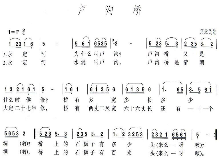 曲谱自学网今天精心准备的是《卢沟桥曲谱》,下面是详解!